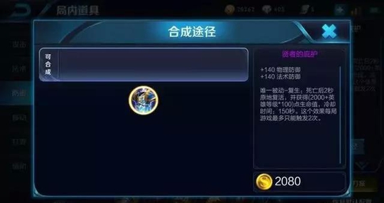 名刀 ,物理输出英雄使用,受到致命伤害时会有短暂的无敌时间,并且提高移动速度。手速够快可以在濒临死亡和复活甲互换。