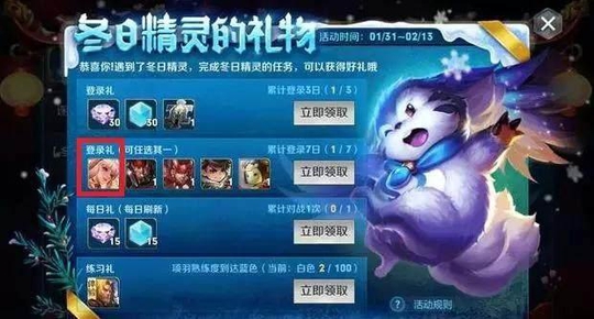 近日,王者荣耀推出了一个全新的“冬日精灵的礼物”活动,长时间未登录的老玩家在1月31日到2月13日期间连续登陆即免费获得一个英雄。