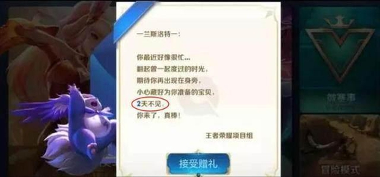 有一位V8玩家仅仅两天没有上线,就被天美判断为退坑的老玩家。