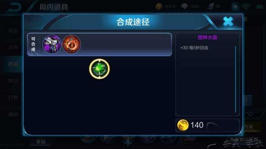 前期这件装备非常的强大,使用该装备每5秒回血+30,在开局就能获取两件提升水晶,那么一共就是每5秒回血+60,一套150级调和铭文也才每5秒回血+52,可以说这件装备堪比一套150铭文,在前期就能得到强大的增益,该装备也很便宜,在中后期到来之后可以直接丢弃或者升级大件。