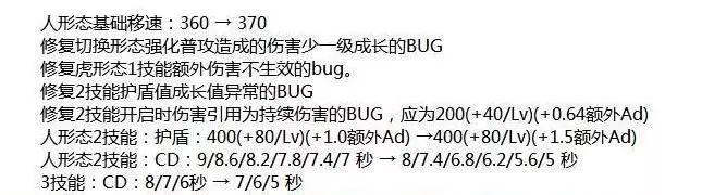 然后就是裴擒虎的增强,主要就是修正了BUG,强化了战士属性,伤害提升的同时人形态下的生存能力大幅度提高,并且技能的CD缩短,据成这个英雄的上手难度比公孙离要低很多,所以在这次加强之后,很可能裴擒虎会是下一轮战士的首抢。