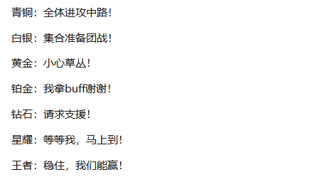 各个段位的玩家水平不一样,局中对话也不一样,王者玩家,不到水晶基地爆炸就不放弃,曾经经历过对面4个人不推塔在我家泉水前调戏貂蝉哥,貂蝉哥怒拿4杀,然后绝地返杀,逆袭了!