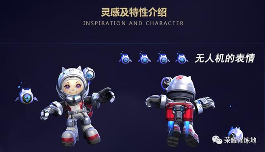 这款皮肤的特效其实是非常给力的,天美单是给皮肤的无人机配件就设计了四个表情,技能特效可想而知了。