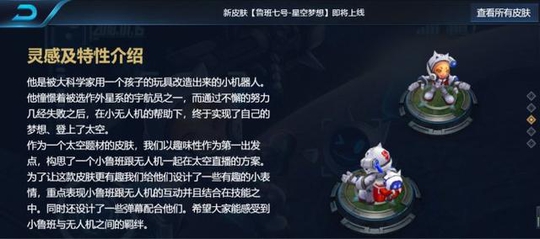 鲁班的荣耀水晶皮肤设计来源曝光,这款皮肤名字目前暂定为星空梦想,也不知道是不是因为某个广告太深入人心了。而这款用荣耀水晶兑换,价值两三千人民币的皮肤,王者荣耀不但给他设计了传说级皮肤专有的回城特效、局内特效、专属语音等,更是把鲁班的这款皮肤定为荣耀典藏皮肤!果然非常适合收藏。