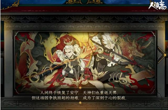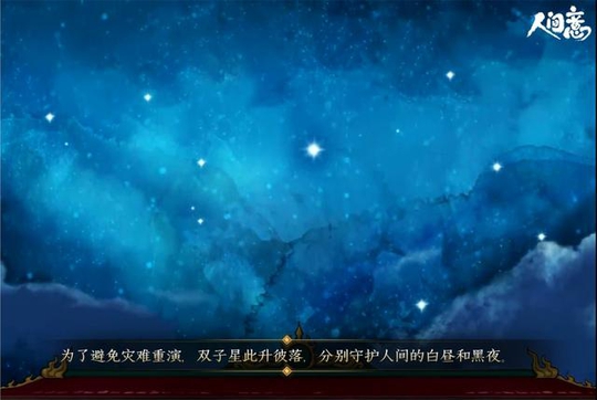 天神终于醒悟:所谓的神,是应人间需要而生。为守护人间,他们放下恩怨,共赴生死一战。人间恢复了安宁,他们终于返回天界。但因这场因争执而起的劫难,成为了深刻于心的裂痕。为了避免悲剧重演,他们化为双子星,分别守护着人间的白天和黑夜。