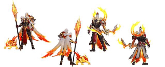 狗年限定皮肤选择了杨戬和后羿的搭配,用永耀之星和辉光之辰来讲述一对天神兄弟和年兽的故事,从而合理又有趣。为了让年味更加浓郁,皮肤选择了红色色调,身上的纹样和配饰都沿用了工笔绘画中的繁琐装饰,包括肩膀上祥云在展示动画中我们第一次使用了人物从画卷中出来的表现方式,并且强调了年兽和角色的互动元素,让整体更加和谐和特别。