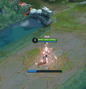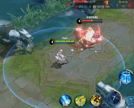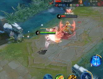 最后是大招,一朵桃花突然盛开,向前射出光球!击中敌人后还有后续的特效反映,依然要要强调的是诸葛亮大招也是弹道窄小,它不可能做得特别状阔宏伟。