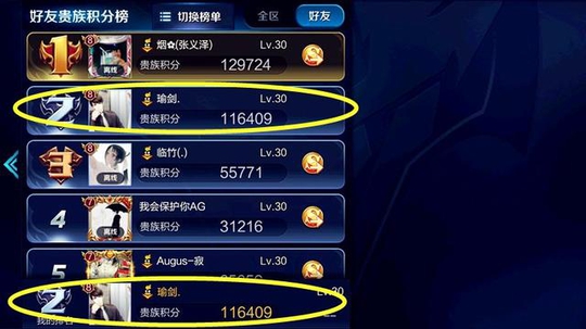 116409积分,换算成软妹币就是1万来块钱,而贵族V8也只需5000软妹币而已。以此,我们可以看出,这位玩家算是个小土豪了,在自己好友列表中排第二。排在他前面的那位玩家,就是送他情人节皮肤的朋友。小伙说这位朋友是现实中的同学,彼此很要好,所以皮肤是他送的。
