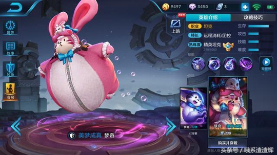 梦奇是天美的原创英雄,从他的外表就可以明显的看出他是一名坦克。这货别看他长相萌萌哒,比起鲁班七号,要击杀他可是难过登天。因为被动不断吸收能量,导致体积变胖,从而提升各方面的属性,所以在前期去反野的时候,他可以大摇大摆的过去,反正两个人是打不过他的。梦奇也可以打野,特别是攻速装,没尝试过的小伙伴赶紧去试试。