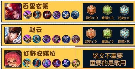 为了能让更多人领悟到他打野的真谛,梦泪还出了一套打野英雄出装,其中有主流的李白、韩信、露娜等,当然还有大家最期待的安琪拉,当看到铭文那一栏时,所有人都被套路了。 梦泪表示,安琪拉打野铭文不重要,重要的是敢用。喜欢安琪拉英雄的玩家不妨试试梦老师的骚操作?