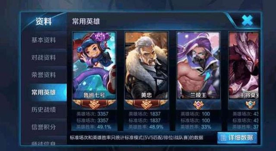 看下这位玩家的英雄胜率,连过50%胜率的常用英雄都没有,一般一个英雄玩的场次多了,都是很精通这个英雄的,胜率超过50%那真是很简单的一些事情。3000多场的鲁班胜率才49.1%,简直拉低了鲁班七号的胜率啊。