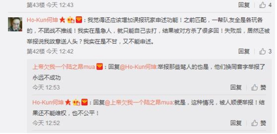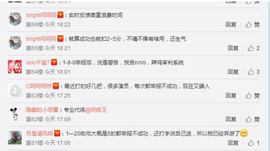 某玩家表示:“希望客服不是吃干饭的,微信举报反馈从来都是一样的答复,敷衍我们消费者”,也有玩家说“实时反馈简直浪费时间,就算成功也就扣几分,不痛不痒的”,看来小伙伴们对于我们的天美大大意见很大啊。