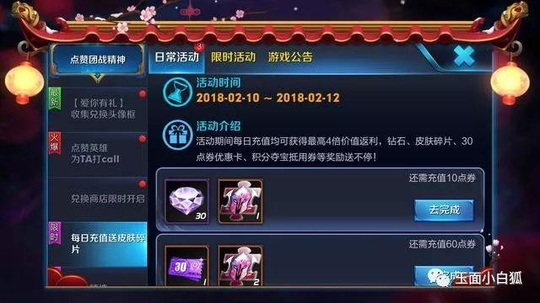 王者荣耀:充值返利活动再次开启,每日累计充60点券返30点券