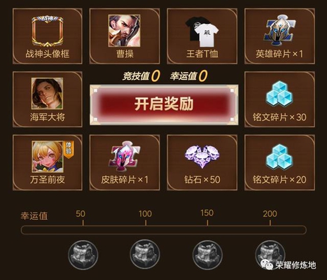 1.抽奖。消耗80点竞技值可以抽一次奖,奖池中有永久战神头像框、永久英雄曹操、英雄碎片、皮肤碎片等等。每抽奖一次玩家可以累积10点幸运值,幸运值达到50/100/150/200,还可以领取额外宝箱。