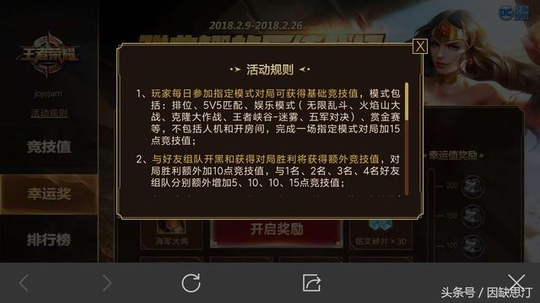 这个活动具体也不需要玩家做些什么,只要玩家打排位,匹配娱乐模式等都可以获得竞技值(人机除外),和好友开黑能获得额外的竞技值。当玩家竞技值到达1200就可以获得雅典娜皮肤。