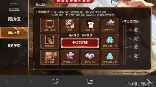当然,如果玩家的竞技值满了的话,可以拿竞技值去抽奖,同样也能获得不错的奖励。
