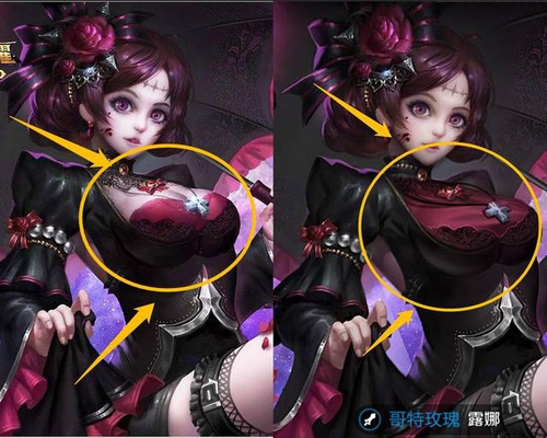 露娜的哥特玫瑰。以前穿的是露背性感小礼服,现在只有露背,没有性感,以前脖子上带了一个蕾丝的装饰项链,现在也没了,加了一层绸缎的布全部遮住,不准看。