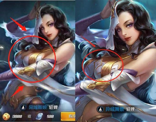 貂蝉的异域舞娘,也做了小小的改动,稍微遮一点点太火的沟。