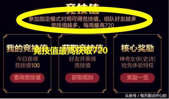 而获取抢先体验的资格方式就是我们在我们的指定模式对局,获取到竞技值100,而我们每天都能获得到竞技值,并且还可以和好友开黑一起获得,而每周可以获得的上限就是720点,所以我们要拉上好友一起快速的进行开黑哟!