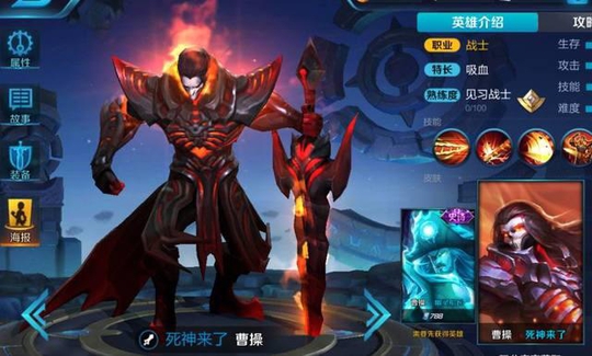 最后一个就是曹操的皮肤死神来了,这款皮肤也是一款夺宝才能获得的皮肤,没有品质显示,但是夺宝获得的几率可是比荣耀水晶还要低,打100局游戏都看不到这个皮肤,堪称在售的绝版!