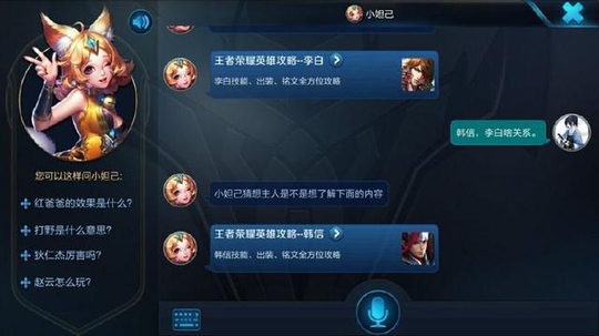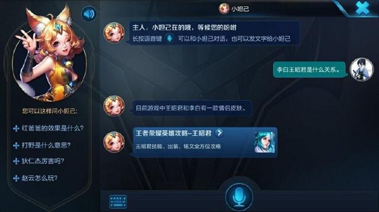 最后玩家继续向小妲己提问?绕来绕去又回到了李白跟王者君的话题,一开始是他们是情侣吗?这次变成了李白跟王昭君是什么关系?于是小妲己还是用同样的话回复了玩家,不过这次换成了王昭君的攻略。这小妲己不仅能够回答玩家提出的问题,还不断的给玩家英雄的攻略。