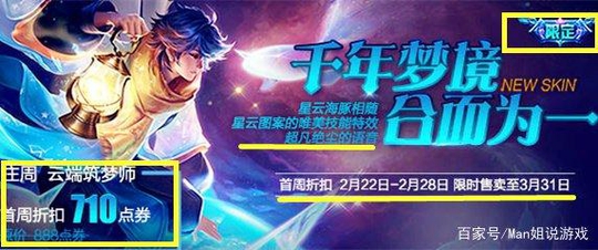 很久之前,相信大家也都听过,庄周会出一款新皮肤吧,当时还以为是敦煌鹿的皮肤呢。这次,天美也爆出了这款皮肤的上架时间,是在2月22日,也就是大年初七。庄周这款史诗级限定皮肤首周折扣710点券,特效却完胜狗年皮肤。不是说笑的,庄周这款云端筑梦师特效,真的是完胜1688皮肤。这款皮肤不仅特效满满,而且还非常便宜。