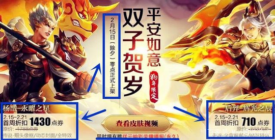 杨戬和后羿这两款皮肤是今年春节皮肤,也是2018狗年限定皮肤。跟去年的鸡年限定一样,今年的狗年皮肤依旧是一款传说,一款史诗级。至于这两款皮肤的特效,史诗级肯定不及传说级亮眼,而且杨戬这款传说级还有动态封面和专属头像框。这两款狗年皮肤将在2月15日上线,同时拥有两款的话,还会赠送永久的祥云纳彩荣耀播报哦。