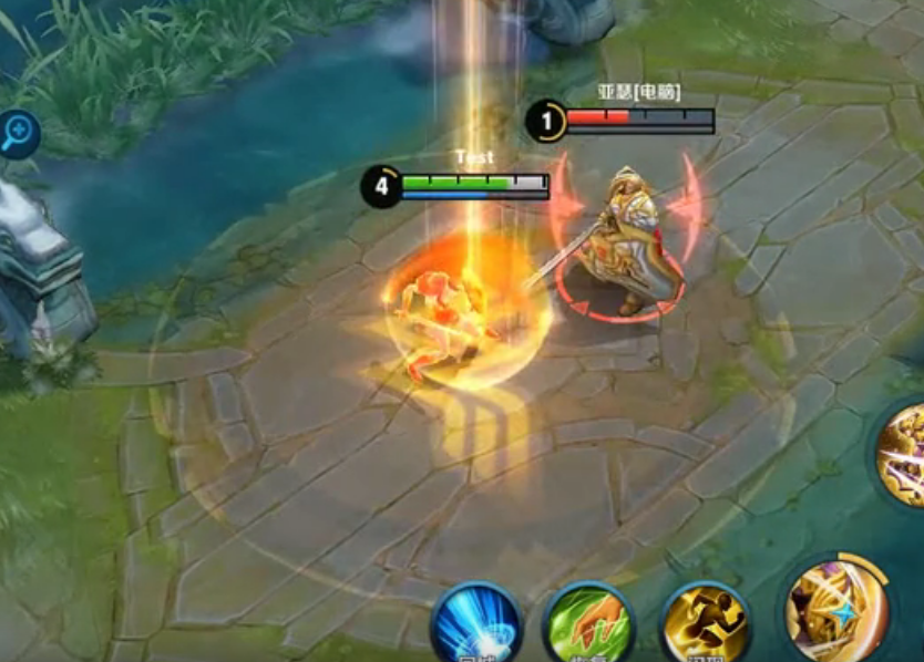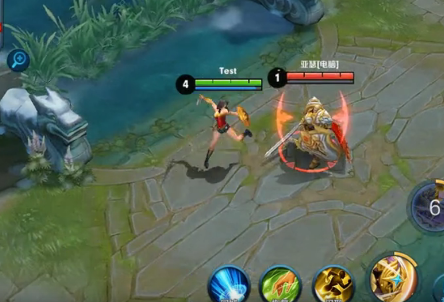 一技能是雅典娜拿着一个盾,冲锋。整个人完全包围在一个金黄色的护盾之中,显的自己非常高贵,不愧为传说中的女神啊。