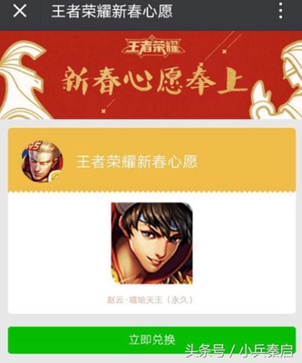朋友开启之后,立马截图发给小编,心愿实现,获得赵云的嘻哈天王。只要点击立即领取,然后再去兑换。
