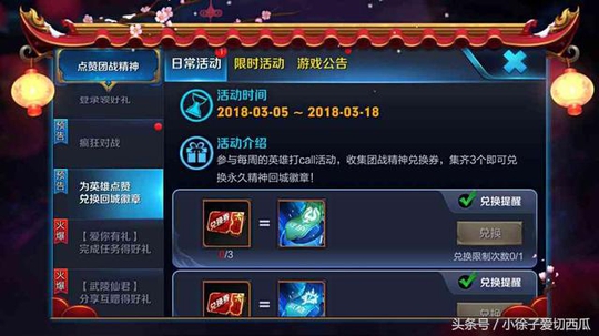 现在只要参与每周的英雄打call活动,收集团战精神兑换券,集齐三个即可兑换永久精神回城徽章,可以说这个活动只要参与就可以领取奖励。
