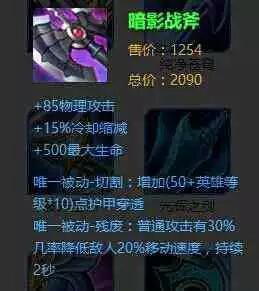 假设敌方拥有1000点护甲,在我们15级且拥有暗影战斧的情况下,我们可以无视其200点护甲,相当于在打一个拥有800护甲的敌人。