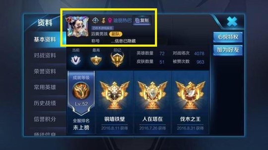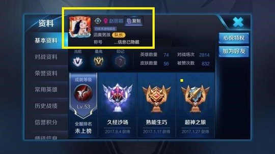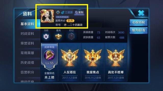 倒是这位江疏影的账号最高段位是位最强王者,当前也是钻石,账号比起赵丽颖的看起来也是差不多,只不过小黑龙跟网友们一样是质疑的,两位明星都是你的闺蜜,而且账号名字一点都没有隐藏,这绝对是不存在的。