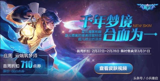 如果说上面五款皮肤是作为2017年的最后压轴,那么22号上架庄周的云端筑梦师就是2018年的开盘菜。