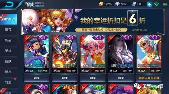 王者荣耀:神秘商店正式开启,放出大量史诗皮肤,天美这次很良心