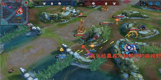 无射手体系的团战。辅助张飞只需要辅助开团,配合打野或者战士去秒掉敌方C位,张飞不管开团还是反打的能力都十分强,团战前,己方有突进的刺客,可以直接2技能跟上大招往敌方C位吼去,也要防止己方C位被秒掉,多去观察敌方刺客走向。团战中张飞的作用主要是吸收伤害,不要小瞧张飞,张飞大招开启后,输出能力也很高,完全可以配合战士打输出。团战后张飞直接回家,立马补血回线上。支援打野或者其他路。