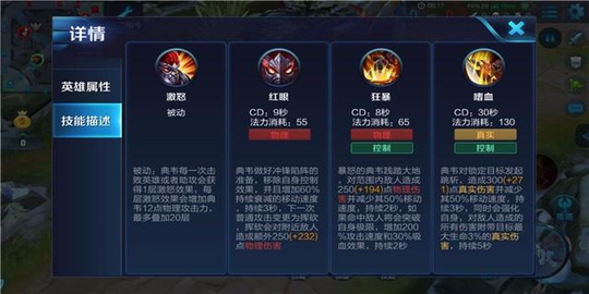 解析:典韦的重要技能,击杀和助攻都会额外增加攻击力,最高可达240点!这是典韦后期强势的主要原因之一。