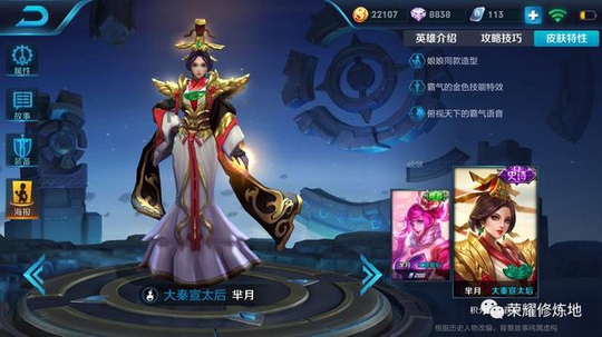 大秦宣太后之前的定位是史诗,在16年元旦的时候只需要充值3888点券,就可以直接领取到,特效也勉强符合史诗,但是相对于一颗荣耀水晶的价格就很不值了。