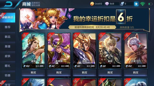 嬴政这个英雄只能用人民币买,这里小编抽到了6折的优惠。