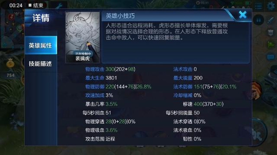 整个英雄使用下来给人的感觉是天美在不断提高英雄的连招流畅性,现在的裴擒虎在两套技能切换之间已经没有了卡顿感,虽然是一个拥有两套技能的英雄,但是操作起来却是非常简单,两三场战斗就可以完全熟练英雄的连招,上线正式服后,又将掀起一阵腥风血雨了!