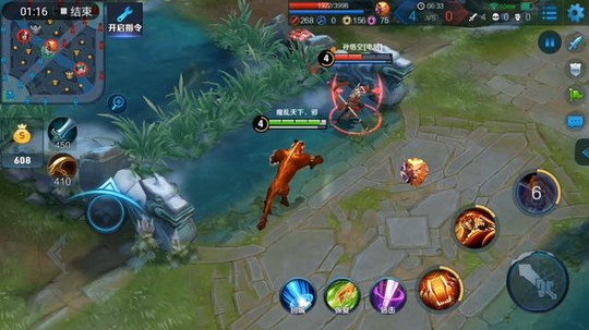接下来切换虎形态,一跃造成伤害同时进行位移,跑到猴子的前边,这一跳如果跳到人后还会再来继续向鼠标所指的方向进行跳跃,堵在猴子的回城必经之路