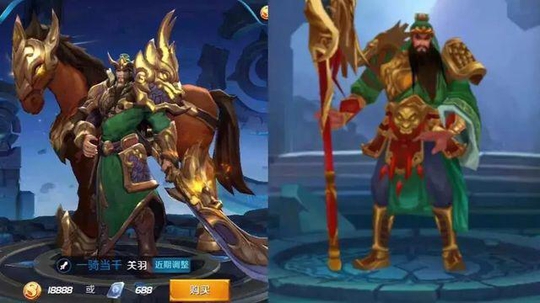 接下来就是关二爷了,前一个矮一些,这一个就高一些,身上的饰品就跟王者荣耀的反着来,问题是马呢?曹操送的马被开发商吃掉了吗?