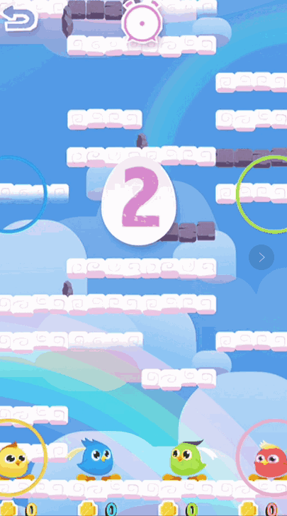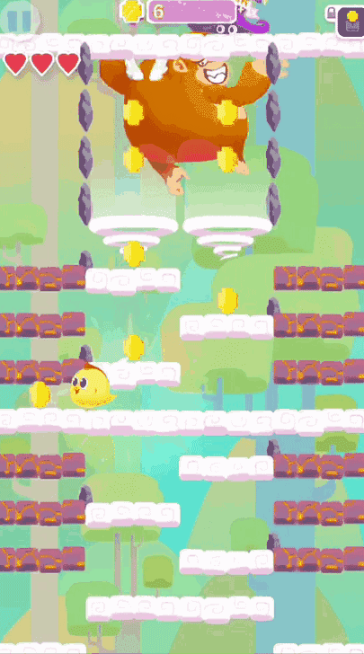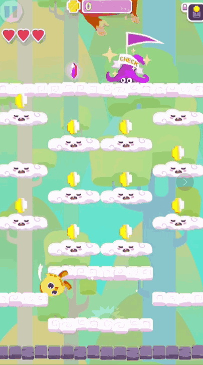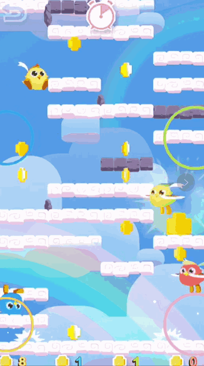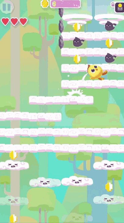 让小黄鸡踏着云层不断往上跳跃。