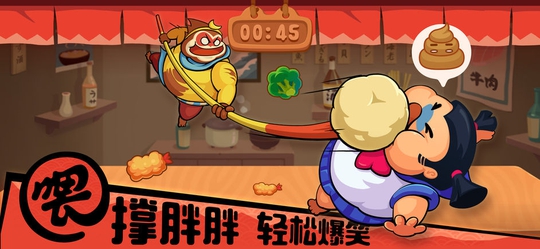 点击屏幕即可控制自己的胖子向前顶,