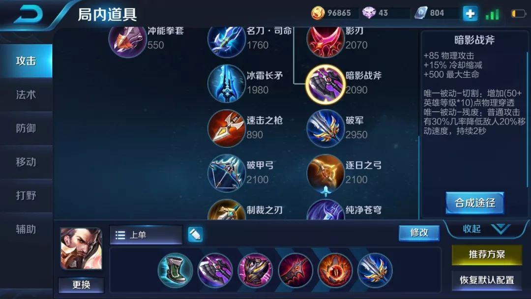 六神装:抵抗之靴+暗影战斧+暴烈之甲+不死鸟之眼+末世+破军