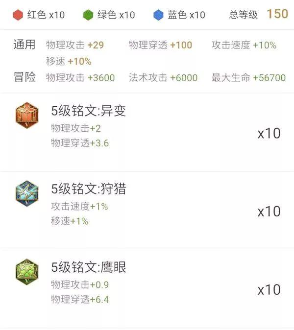 这套铭文就是游戏中所谓的百穿铭文。狩猎让曹操拥有较好的移速和攻速,在前期发育时可以更加平稳,而鹰眼与异变的加成为曹操提供了高额物理穿透与攻击力,无论对于脆皮还是坦克都具有一定的威胁性。