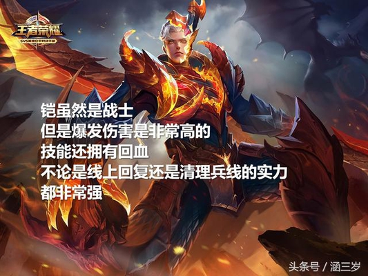 相信铠的瞬间爆发玩家都很清楚,铠虽然是战士,但是爆发伤害是非常高的。技能还拥有回血,不论是线上回复还是清理兵线的实力,都非常强,当然,铠不仅在清理兵线上颇为出色,在打野位置上也有很大优势。