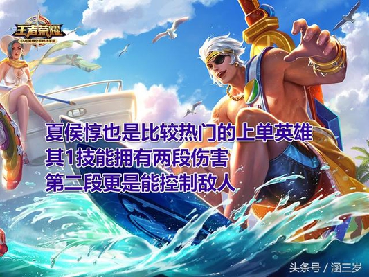 夏侯惇也是比较热门的上单英雄,其1技能拥有两段伤害,第二段更是能控制敌人。能快速消耗小兵的生命值,而二技能能让夏侯惇普攻附带额外的真实伤害,配合1技能,清理兵线的速度也是比较快的,生存能力和发育能力都很高。