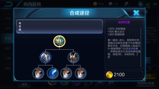 极寒风暴能够增加物理防御,提高冷却缩减,增大法力值。当然,在对战中还可以根据阵容灵活出装,射手在没有钱买复活甲时可以做名刀,提高团战容错率。