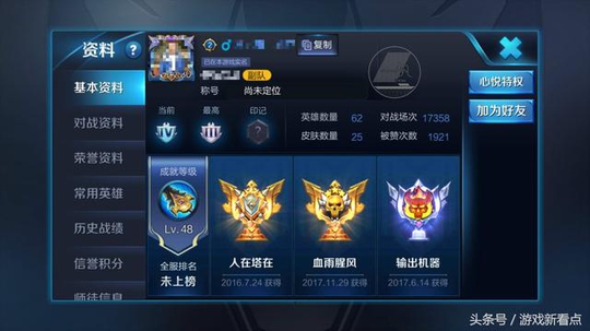 可以看到这名大神玩家,对战场次高达17358场,仅零头就比很多玩家的总场次还多,上万场次的玩家真的很少见,就算是老玩家也只有几千场,看到这名玩家再也不会有玩家说千场没上过钻石了,这名玩家17358场,最高段位只有钻石三!可能这就是传说中的经验宝宝!