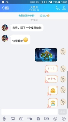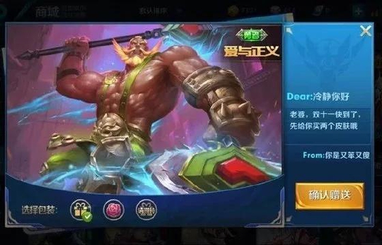 然后打完后男玩家就给妹子送了个皮肤,然后还在qq上通知了妹子,妹子上号一看可气坏了,你送我皮肤就罢了,但是你送我这么丑的程咬金皮肤是什么意思呢?
